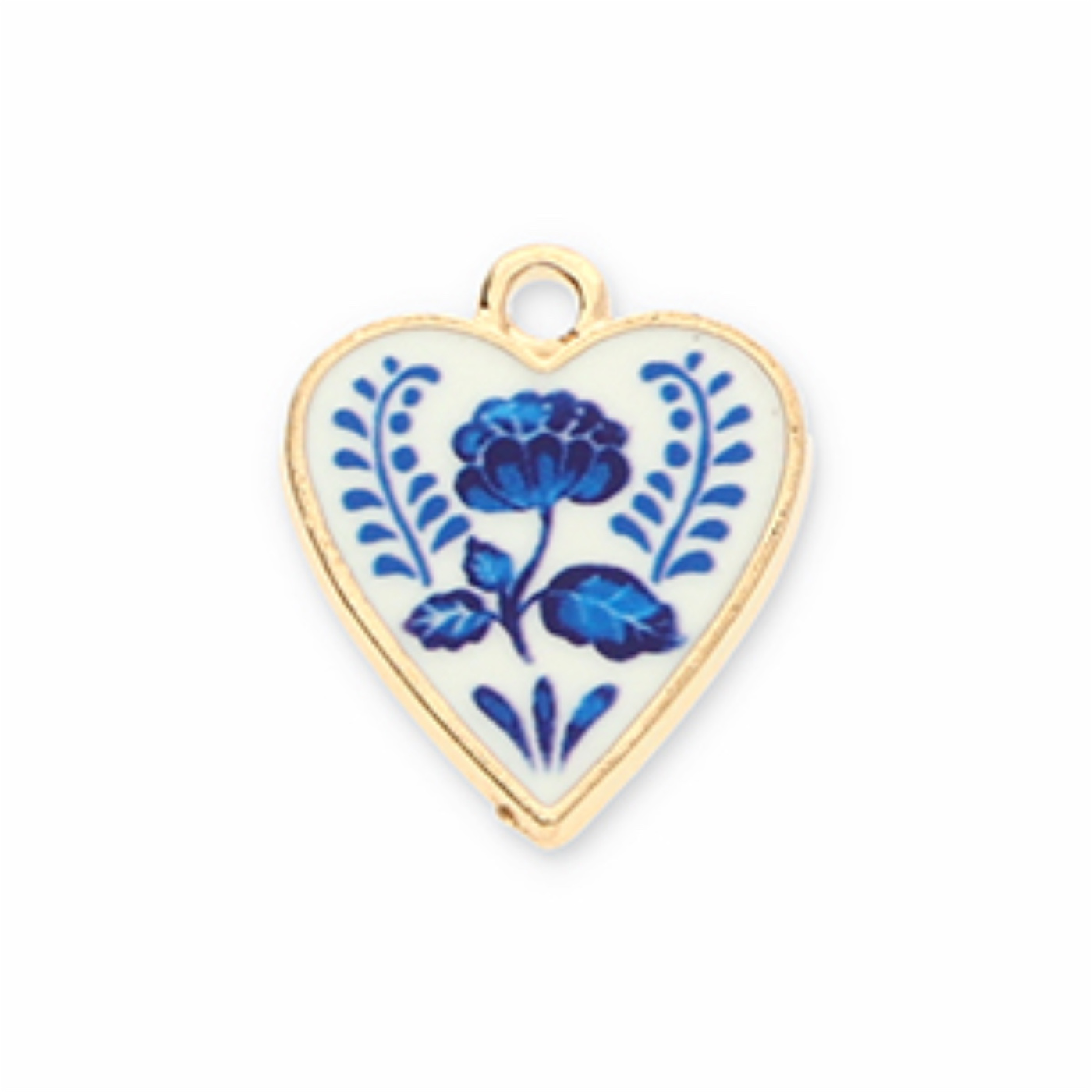 Kovový přívěsek, srdce s květinou zlato-bílo-modrá