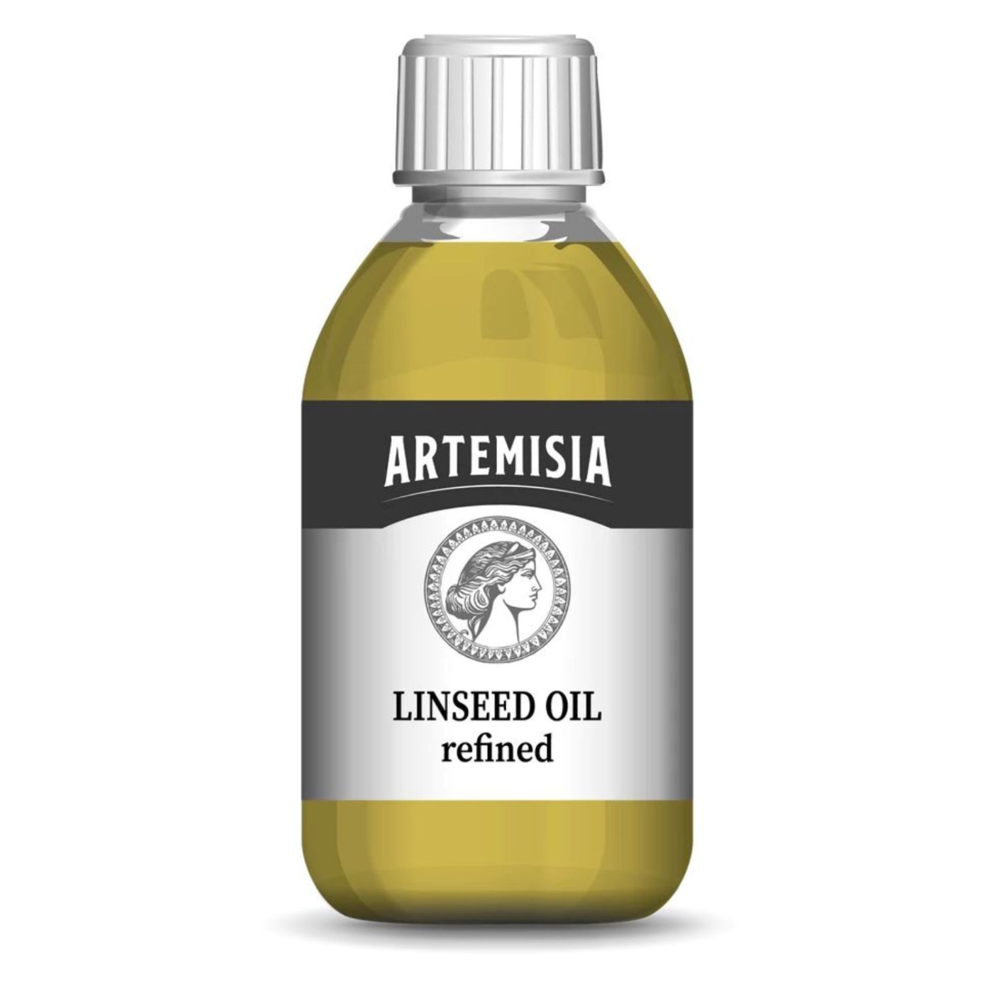 Rafinovaný lněný olej z Artemisie, který po smíchání s barvou zlepšuje její optické vlastnosti, zvyšuje lesk a zlepšuje průhlednost barev. Na rozdíl od rozpouštědel nemění strukturu barvy. Lněné oleje také ovlivňují dobu schnutí, kterou lze zkrátit nebo prodloužit v závislosti na použitém způsobu zpracování. Rafinovaný lněný olej: Má světle žlutý odstín, v průběhu času výrazně neztrácí barvu a vykazuje mnohem menší tendenci ke žloutnutí než surový olej. Po přidání do barvy se stává tekutějším a lépe se nanáší. Umělci se již dlouho spoléhají na lněný olej při úpravě vlastností olejových barev, přípravě médií nebo vytváření vlastních směsí. Po zaschnutí se malířský film stává lesklým a voděodolným.