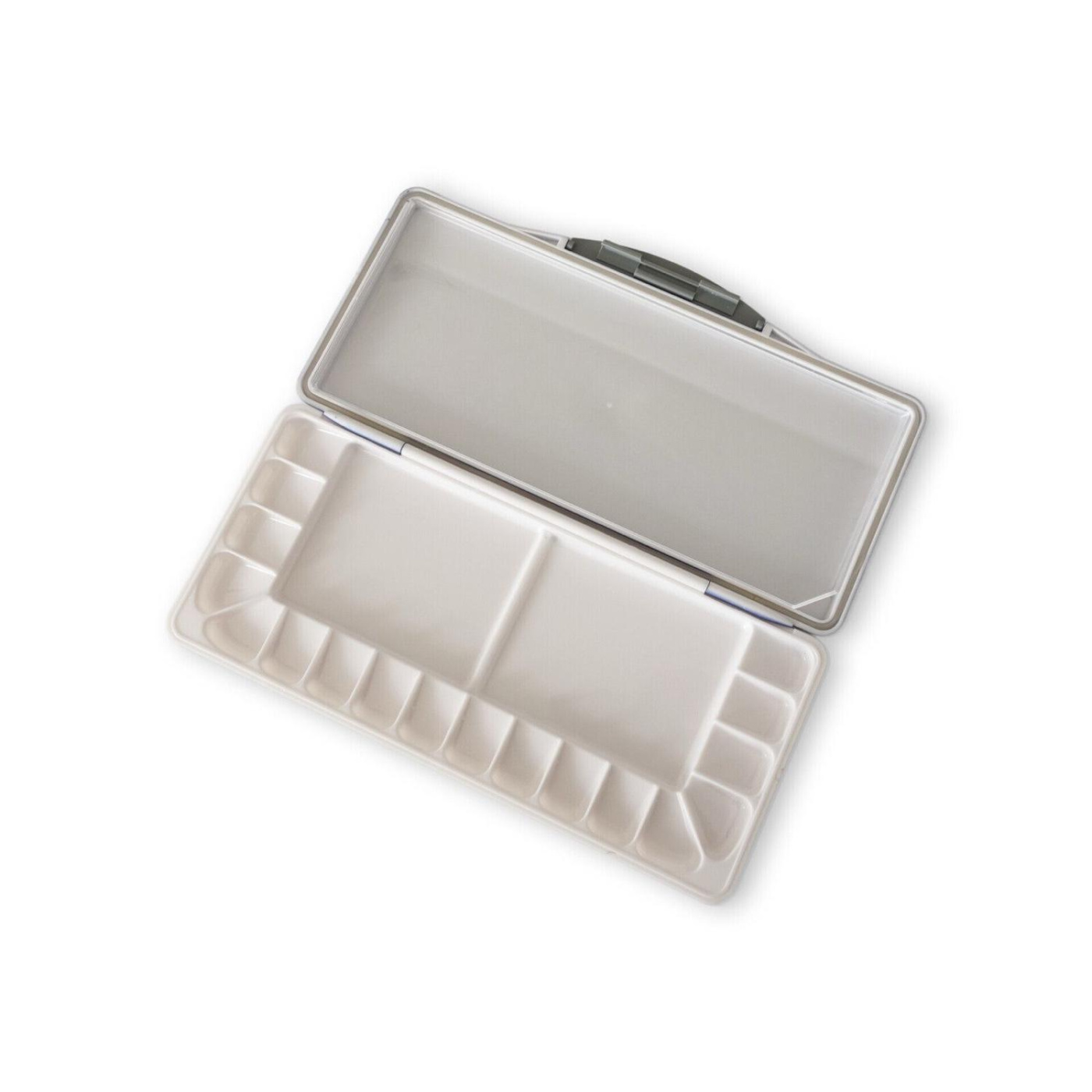 Plastová paleta s možností rozložení pomůže všem akvarelistům s malováním na cestách. Paleta je tenká a skladná, pohodlně ji vejdete i do tašky. Paleta je vyrobena z plastu obohaceného o pryskyřici, takže je pevná a nezlomí se tak rychle. Obsahuje 20 kalíšků na barvy a 2 velké plochy pro rozmíchávání barev.