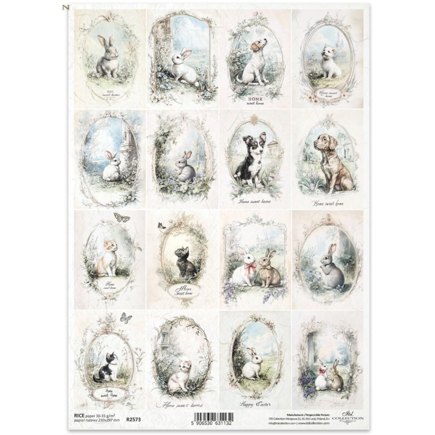 Rýžový papír na decoupage, A4, jarní zvířátka