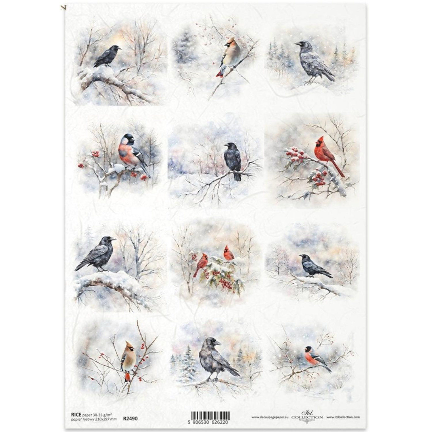 Rýžový papír na dekupáž, A4, ptáci v zimě 3