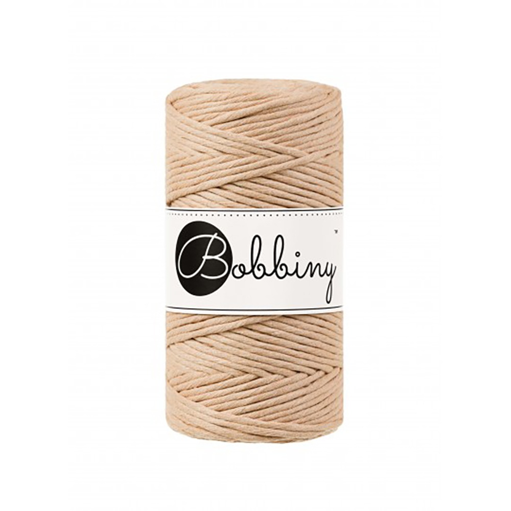 Macramé točená šňůra značky Bobbiny je vysoce kvalitní bavlněná příze vhodná pro tvorbu macramé dekorací. Macramé šňůra je certifikována (OEKO-TEX standard) a schválena jako bezpečný materiál pro tvorbu výrobků pro děti . Je přírodní, vyrobená ze 100% recyklované bavlny a biologicky odbouratelná .