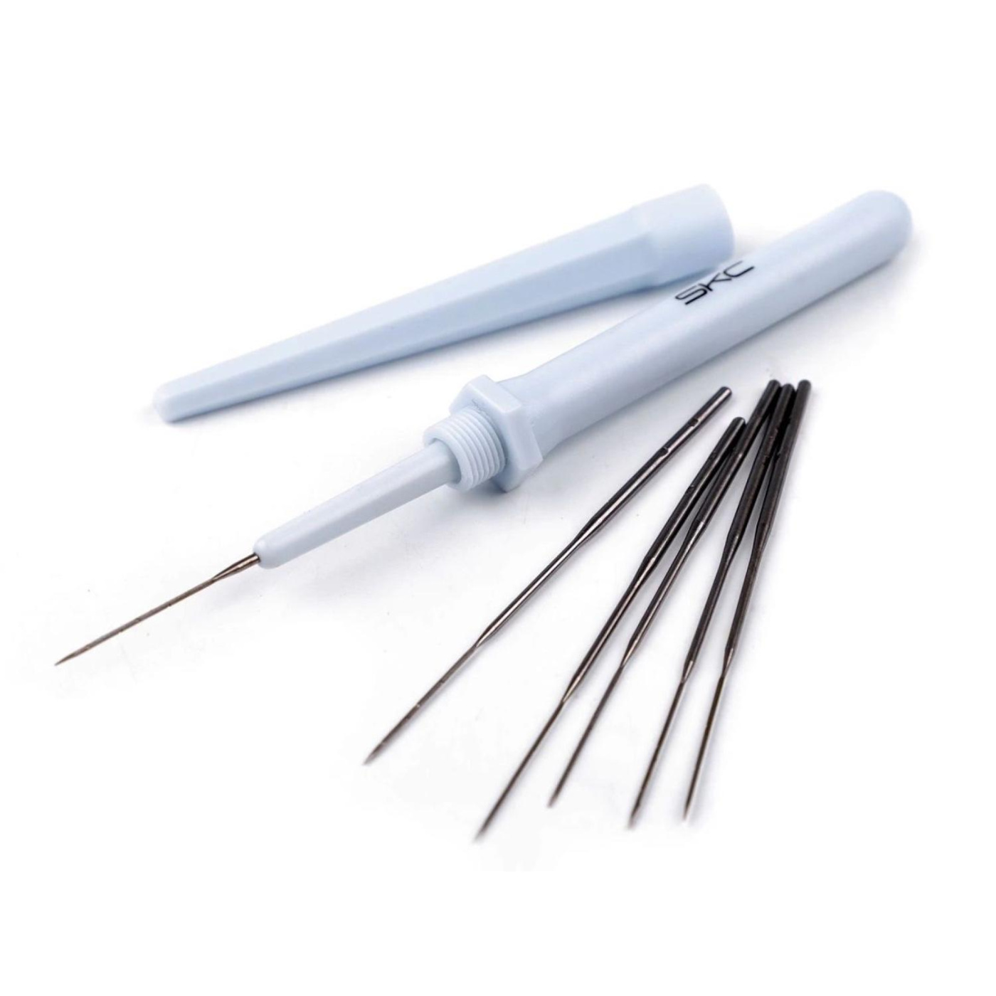 Sada plstících per a 6 jehel vám poslouží k pohodlnému plstění za sucha. Jehly můžete měnit podle potřeby. Jsou trojúhelníkové, s drobnými drážkami po stranách pro zachycení vlny.