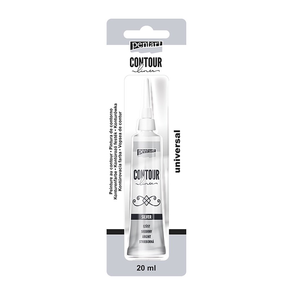 Kontura má objem 20 ml a na víčku zúženou špičku pro snadné vytlačování a nanášení linií.
