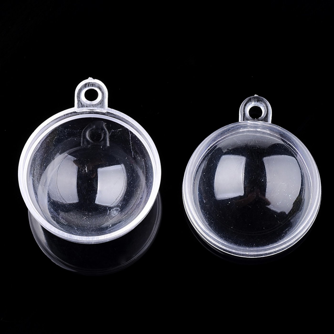 Sada obsahuje dvě poloviny koule: větší o velikosti 30 mm s otvorem pro zavěšení o průměru 3 mm a menší o velikosti 27 mm s otvorem pro zavěšení o průměru 2,5 mm.