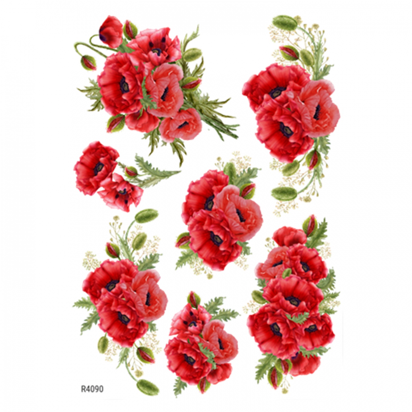 Rýžový papír, A4, vlčí máky, bílé pozadí