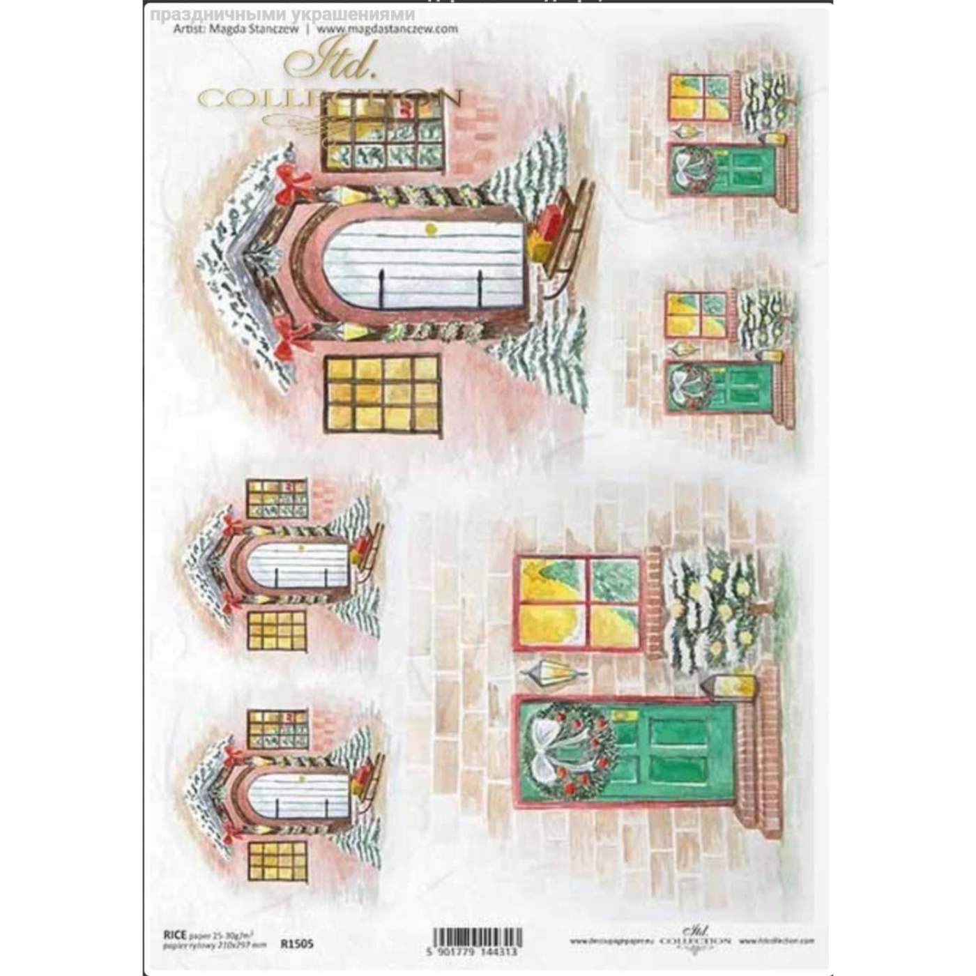 Rýžový papír na dekupáž, A4, dveře - zelené