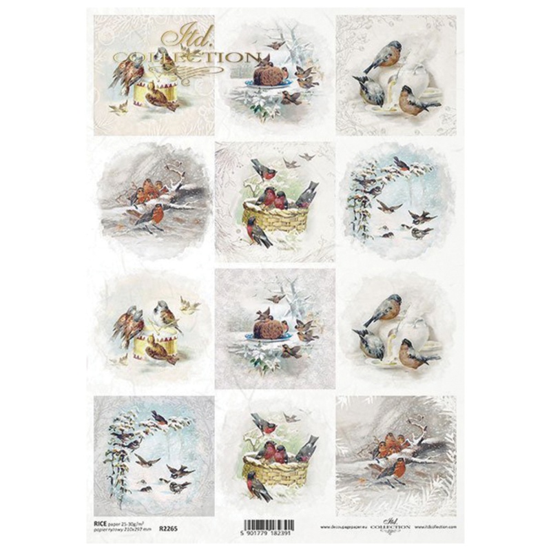 Rýžový papír na decoupage, A4, ptáčci v zimě