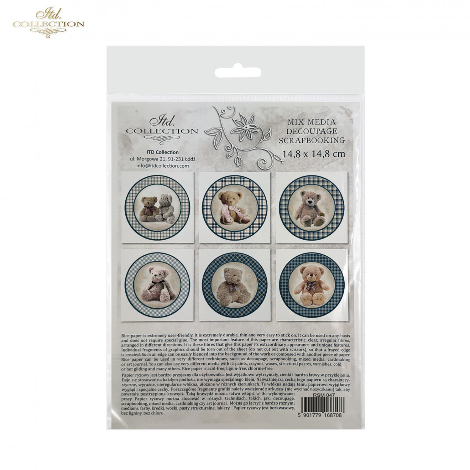 Rýžový papír, mini set obsahuje motiv medvídků. Rýžový papír je tenký , poloprůhledný papír z gramáží 30g/ m2 vhodný pro tvorbu technikou dekupáž , scrapbooking... celý popis