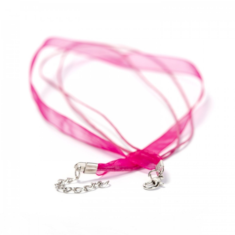 Šňůrka s organzou a se zapínáním tmavá růžová