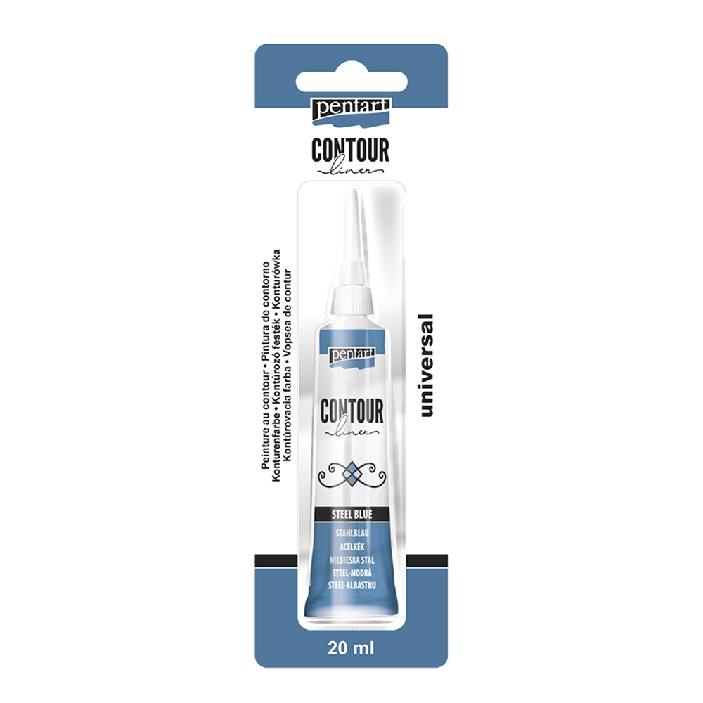 Univerzální konturovací barva je hustá barva na vodní bázi použitelná na libovolný povrch. Určena pro kraeslení linií a obrysů, pro zvýraznění objektů a jejich detailů, nebo pro tvorbu plastických elementů.
