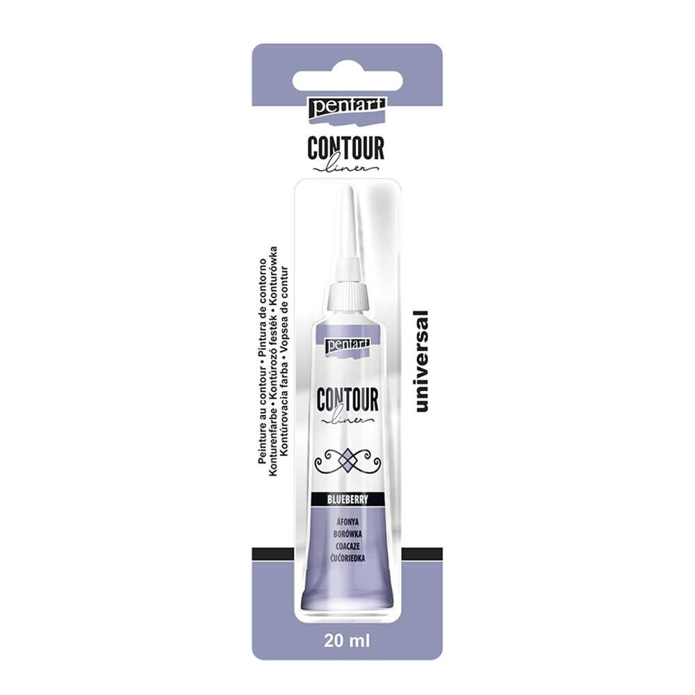Univerzální konturovací barva je hustá barva na vodní bázi použitelná na libovolný povrch. Určena pro kraeslení linií a obrysů, pro zvýraznění objektů a jejich detailů, nebo pro tvorbu plastických elementů.
