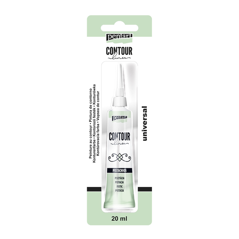 Univerzální konturovací barva je hustá barva na vodní bázi použitelná na libovolný povrch. Určena pro kraeslení linií a obrysů, pro zvýraznění objektů a jejich detailů, nebo pro tvorbu plastických elementů.
