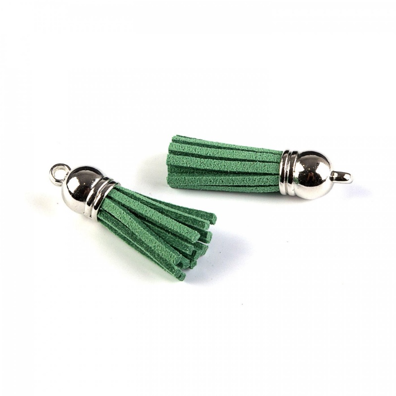 Visící třásně jsou ideální pro tvorbu náušnic, přívěsků jako dekorace nebo koncovka zipů. Jsou vyrobeny z kovové koncovky ve stříbrné barvě a semišové šňůrky , která imituje kůži. Semišová šňůrka z mikrovlákna je velmi jemná na dotek, ale přitom velmi pevná.