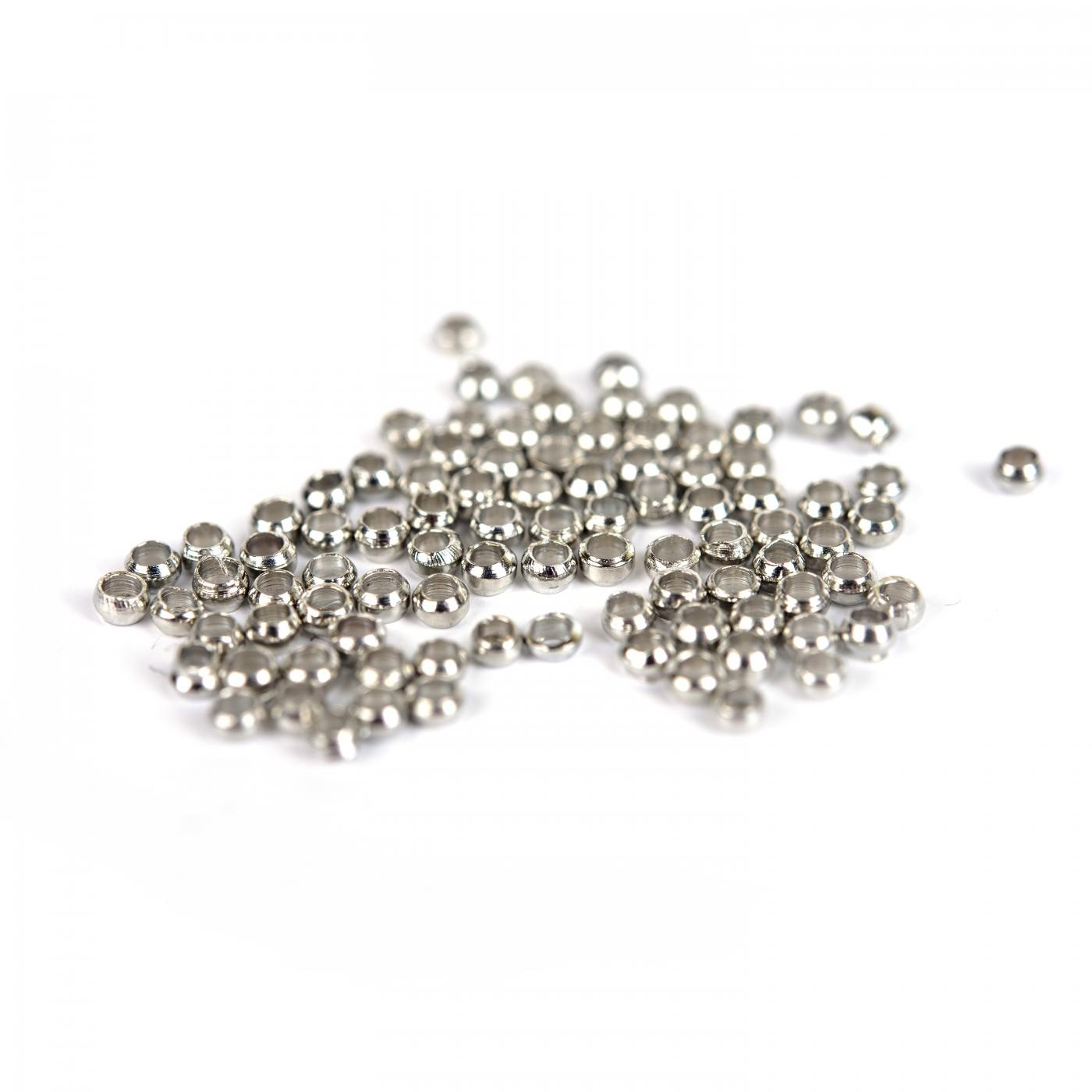 Korálek slisujte - zatlačte plochými kleštičkami. Korálky zamačkávacího rokajlu jsou z mosazi, bez obsahu niklu a mají velikost 2,5 mm.